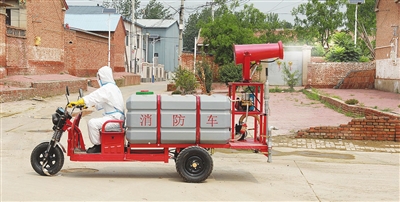 武清区对永定河泛区受影响较重的邵七堤等村进行消毒。