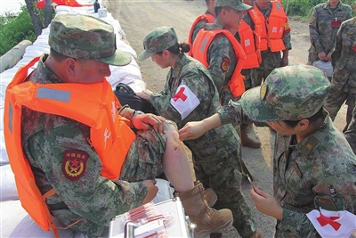 本报讯(记者 张清 通讯员 张晶晶 付晶)日前,根据统一部署,天津警备区干休所“轻骑兵”特色医疗队依令抵达静海区台头镇,对抗洪一线解放军、武警官兵、民兵进行医疗巡诊和紧急救治。