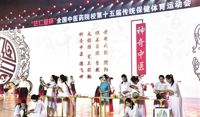 本报讯(记者 姜凝 摄影 胡凌云 通讯员 刘恩昊)传承岐黄,律动津沽。昨天,由国家中医药管理局、全国中医药高等教育学会主办的全国中医药院校第十五届传统保健体育运动会在天津中医药大学开幕。