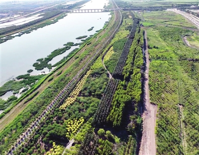 据了解,绿色生态屏障宁河段位于永定新河两岸,建设总投资15.4亿元,总面积17.81平方公里,是绿屏“天”字形骨架的北部门户。绿色生态屏障宁河段分三期建设,以永定新河为轴,沿两岸依次展开,截至目前,三期工程已经基本完成,近4000亩林地与4000亩水面林水相依,25.6公里堤顶路与26公里林间道蜿蜒穿行。