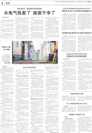 志愿者们行动之前,武清区水务局采取多种方法退水,区城市管理委征调70多台车辆清运转移地区的垃圾,清扫路面。针对回迁后,头两天垃圾量可能增加的情况,加大垃圾清运运力保障,保证环境卫生。