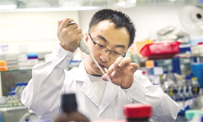 中国科学院天津工业生物技术研究所科研人员在做人工合成己糖实验。 本报记者 张磊 摄