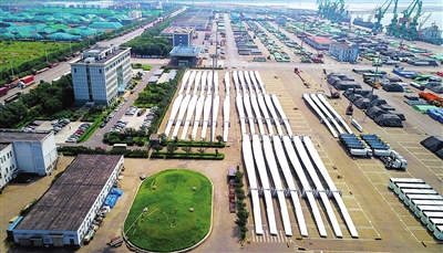 日前,由我市企业生产制造的36片66.442米长的大型风电叶片和12组36片叶尖在天津港汇盛码头顺利装船,搭乘我国“大祥”轮驶往海外。