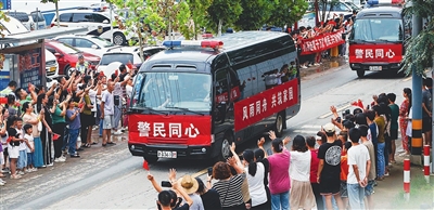 本报讯(记者 徐丽 通讯员 张婧怡)8月20日,静海区转移安置群众安全返回家园。8月21日上午,天津公安600余名应急支援警力圆满完成防汛抗洪阶段性工作任务,在静海区台头中学集结返岗。台头镇父老乡亲挥动红旗夹道欢送,热烈的氛围温暖了所有民警的心。