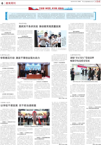 4月13日,天津市教育系统学习贯彻习近平新时代中国特色社会主义思想主题教育动员部署会举行,对教育系统开展主题教育作出安排部署。四个多月来,在市委巡回指导组的有力指导下,教育系统各单位深刻认识开展主题教育的重大意义,全面把握开展主题教育的总要求、具体目标和根本任务,强化组织领导、分类指导、调度督导,在理论武装走深走实上下功夫,在真学真信真用上下功夫,在学懂弄通做实上下功夫,高标准高质量完成主题教育各项任务。目前,第一批主题教育即将结束,本报摘选刊登教育系统部分单位开展主题教育的好经验好做法以及正面典型案例,充分展示教育系统开展主题教育取得的成果成效,加强交流分享、深化互学互鉴。