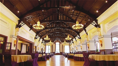 这个让当时的英国人“欲罢不能”的乡谊俱乐部,大厅为两层混凝土梁柱结构,硬木地面,雕花木质楼梯,厅顶为彩色玻璃穹顶,二层至今仍保留着铺有细木弹簧地板的舞厅。乡谊俱乐部的保龄球馆留存至今,旧时用的木质保龄球与设计巧妙的送球通道依然保存完好,仿佛仍能看到当时人们飞手扬球时的模样。(节选)
