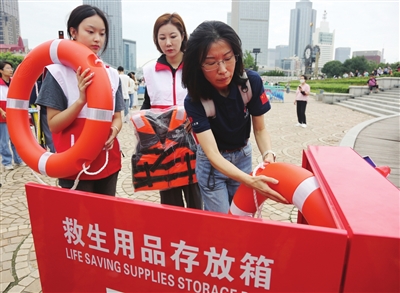 铺设活动现场,市红十字应急救援救护服务中心工作人员对20位海河志愿者进行了水上救援技能培训,大家纷纷表示将把这份热情转化为一种守护,逐步营造出“人人会急救,安全在身边”的氛围。随后,救生设备被安放至设定点位的救生用品存放箱中,今后志愿者将定期对海河沿岸救生设备进行巡查,市红十字基金会将每年2次进行救生设备的补给。
