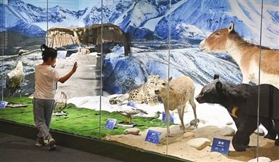8月28日,参观者在中国园林博物馆参观“极境──走进青藏高原”展。