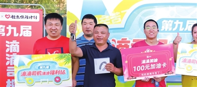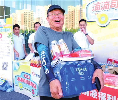 28日一早,活动现场就排起了长龙,工作人员挨个儿为司机师傅们送上了Polo衫、矿泉水、能量饮品和防暑防护应急包。现场还设置了抽奖环节,司机师傅们可抽取加油卡、车载充气泵、车载吸尘器以及颈部按摩仪、玻璃水、花露水等奖品。现场井然有序,司机师傅们在活动期间留下了一张张灿烂的笑脸。