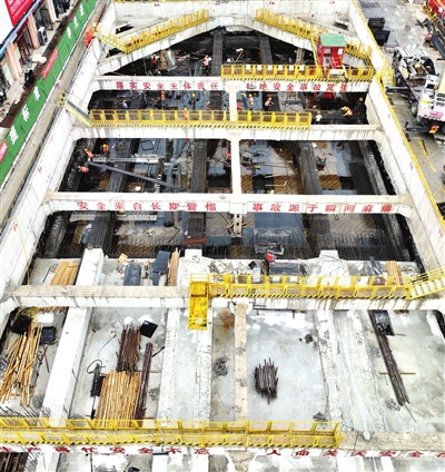 今日,中国铁建大桥局天津地铁8号线延伸工程延安路站主体及一号风道将实现封顶,为全线早日开通奠定基础。 本报记者 张磊 摄