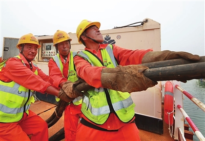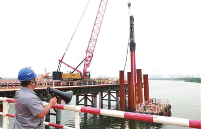 27日,中铁十八局天津滨海新区西中环快速路跨海河桥工程顺利完成水上顶推临时墩首根钢管桩施工。水上顶推临时墩主要是为大跨度钢箱梁顶推提供临时支撑,为后续主桥建设“大干快上”提供坚实保障。此次完成的首根临时墩钢管桩桩长约50米,单桩承载力450吨,为华北地区顶推临时墩钢管桩单桩承载力之最。