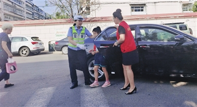 早上7时50分左右,记者在集贤里小学门口看到,虽然道路不宽,但校门口秩序良好。在交警引导下,送孩子的车辆不到10秒钟就停好车,教师和社区、家长志愿者接学生下车、护送学生入校,车辆同时迅速驶离,校门口不再拥堵。