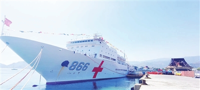 图为中国海军“和平方舟”号医院船抵达东帝汶民主共和国帝力港。