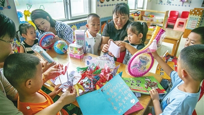 2023秋季开学第一天,静海区台头镇中小学、幼儿园如期开学。台头镇第一中心幼儿园里,老师们正在讲述抗洪英雄的事迹。
