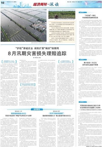 同老高一样,在汛情后收到温室大棚保险赔付款的还有国寿财险天津市分公司的受灾客户。该公司相关负责人告诉记者,截至8月底,受暴雨、洪涝灾害影响,公司收到的农业保险报案数超过100件,涉及水稻、玉米等农作物以及温室大棚等农业设施。