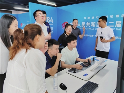 随着科技不断发展,传统的起重司机工作范畴发生了翻天覆地的变化,从最早的手拉肩扛,到现在通过远程控制平台完成装卸任务,对于这一技术岗位的要求也越来越高。据了解,此次新增的起重设备应用技术赛项,共分为场桥、岸桥操作两大方面内容,25名选手通过远控起重设备,远程操控五十多米高的大型设备吊装集装箱,实现操作于“千米之外”,精准到“厘米之间”,充分展现现代产业工人的高超技艺。
