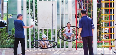 河东区团结东里口袋公园不仅是孩子们游玩的乐园,还是他们学习的园地。