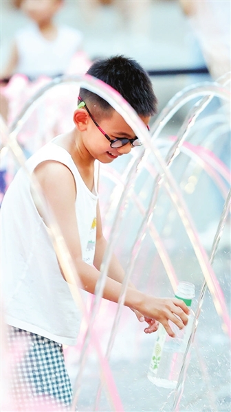炎炎夏日中,孩子们在和平区胜利公园内戏水纳凉。