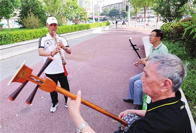河北区昆纬路口袋公园成为附近民乐爱好者练习切磋的快乐园地。