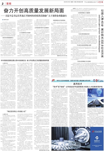 天津高效利用引滦等外调水服务市民生活和工业生产,合理开发地表水资源用于农业和生态,不断增加再生水、淡化海水等非常规水源配置力度。