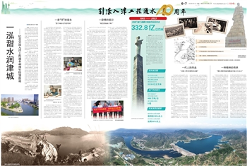 本报讯(记者 王音)记者从市水务局获悉,40年来,引滦入津工程累计向我市安全供水332.8亿立方米,有力地支撑了城市经济社会发展,被誉为城市供水的“生命线”。