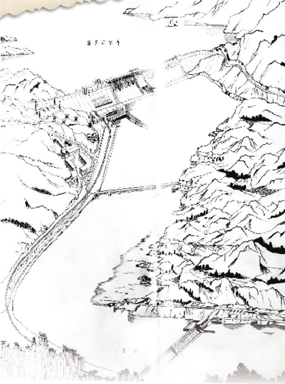 陆宗磐仍然珍藏着49年前他亲手绘制的潘家口水库大坝鸟瞰图。“这是当时国内在建项目中最大的水利工程,也是国内首座混合式抽水蓄能电站,坝型是低宽缝混凝土重力坝,按千年一遇洪水设计。” 陆宗磐说。在所有设计人员的共同努力下,仅仅半年,潘家口水库就完成了初设,1975年正式开工。