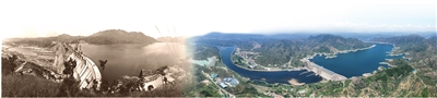 潘家口水库昔日与今朝(合成图)。 照片由市水务局提供