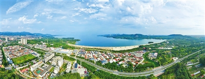 11日,采访团一行来到黎河西铺段了解当地治理情况。而后来到2017年8月正式建成投用的于桥水库前置库。从上游治理到前置库启用,为于桥水库水质提升打下坚实基础。 俯瞰于桥水库。