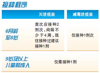本报讯(记者 徐杨)每年10月至转年3月为我市流感流行季节,其中1至2月为流行高峰。目前,我市已经启动流感疫苗预防接种工作,市疾控中心专家提醒市民,接种疫苗至产生抗体需要2至4周时间,建议在流感流行季来临前一个月,也就是9月开始接种,这样能更好地预防流感。