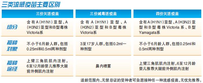 我国批准上市的流感疫苗包括三价灭活疫苗、三价减毒活疫苗和四价灭活疫苗,其中,灭活疫苗有裂解疫苗和亚单位疫苗。多项研究显示,我国获批上市的三价和四价流感疫苗在安全性上没有差别,接种后各疫苗株均具有较好的免疫原性和效力效果。流感裂解疫苗和亚单位疫苗主要是制备工艺不同,亚单位疫苗抗原成分纯度更高,相较于裂解疫苗具有更好的安全性。