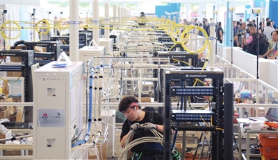 “这边线路需要确认。”“好的,我马上检查。”……昨日,在第二届全国技能大赛信息网络布线赛项现场,一天的竞赛马上就要开始,选手们正紧张地进行赛前准备。负责保障的工作人员张洪豪满场飞奔,帮助选手们解决遇到的突发问题。