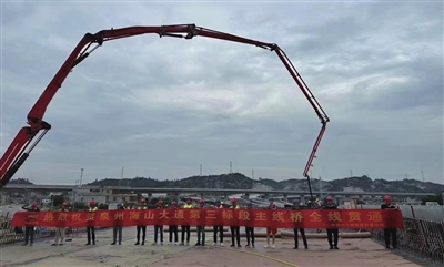 9月16日,随着最后一方混凝土浇筑完成,由驻津央企中铁十八局集团承建的海山大道第三标段主线桥全线贯通,为连接泉州东站高架桥通车奠定了坚实的基础。 (文图/熊君丽 曹伟)