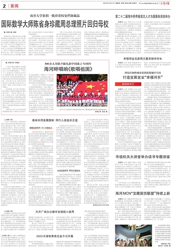 在昨天校史档案捐赠仪式上,南开大学党委副书记梁琪说,如今南开大学八里台校区已经成为天津市爱国主义教育基地,将认真保管、有效利用这些珍贵资料,弘扬一代代杰出校友的精神,讲好南开故事、讲好中国故事,凝聚爱国、报国、奉献的时代正能量。