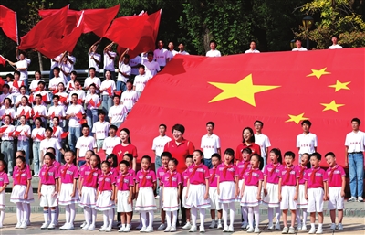 “五星红旗迎风飘扬,胜利歌声多么响亮。歌唱我们亲爱的祖国,从今走向繁荣富强……”昨日下午,在海河天石舫码头亲水平台,鲜艳的红旗,动人的歌声,灿烂的笑容与河边美景相互映衬,《歌唱祖国》的熟悉旋律激扬唱响。来自我市文艺、体育界名家和先进人物及群众代表500余人同唱一首歌,为新中国成立74周年献礼。