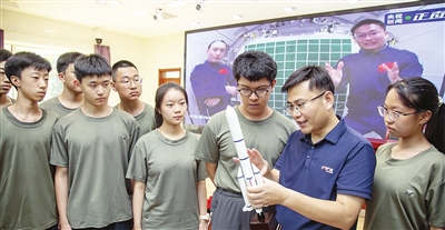 随着大屏幕中一个个神奇的太空现象的出现,天津益中校园里的掌声、欢呼声响成一片。作为特邀嘉宾,天津爱思达航天科技股份有限公司航天专家李世伟走进校园,为大家进行了一场科普讲座。“从2003年神舟五号飞船载着杨利伟飞上太空到今天,中国已经成为跻身世界前沿的航天大国,中华民族也必将为推进人类文明发展作出新的更大贡献。”直播开始前,李世伟为学生们展示了太空实验的地面对比实验,讲述了中国航天事业发展历程,并鼓励大家:树立远大理想,勇于追寻心中的“科学梦”。