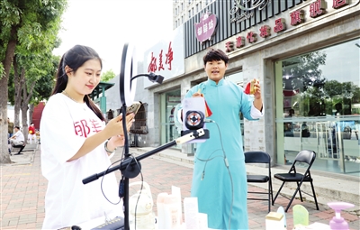 郁美净天津店直播间穿插快板、相声等才艺表演。 本报记者 胡凌云 通讯员 石乔 魏进 摄