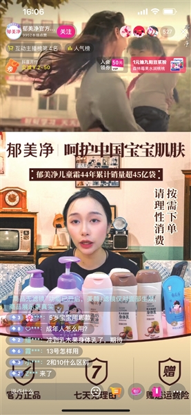 9月14日上午,郁美净官方微博发布消息:“别催了别催了,连夜通网了!毕竟44岁了,不太会玩大家应该不会怪我吧!抖音全面入驻,今天下午两点抖音开播,大家来玩哦!” 当晚,郁美净董事长、总经理史滨自称“天津baibai”,在直播间跳舞感谢各位“贵人们”,一下收获了近70万消费者真金白银的支持,多款商品被抢购,甚至卖到断货。史滨坦言,这样的销售数据让他惊喜。