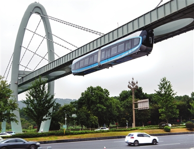 空轨即悬挂式单轨列车,与传统交通方式不同,空轨列车车体悬挂于轨道梁下方凌空“飞行”,被称为“空中列车”。