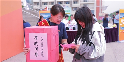 为吸引学生们了解专业的金融知识,各家金融机构组成联合宣教小分队,发挥各自特色,在校园内设置多个金融宣教咨询台,积极与学生们进行互动,以情景剧、小游戏、金融知识竞答等年轻人喜闻乐见的形式,普及“金融基础常识”“反电信诈骗”“个人信息保护”等各类金融知识。