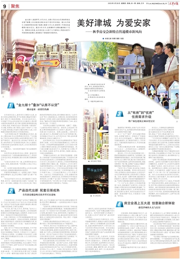 本届房交会结合天津的区位、文化、风貌建筑等特点,把展会与商贸文旅紧密结合。徜徉在小洋楼建筑群,逛完各色楼盘,还能在现场听场相声,天津人把人文与宜居结合得如此有创意。房交会通过融合自然景观、历史文化和现代潮流,以房地产业链及商贸文旅产业高质量发展促进消费扩容提质。