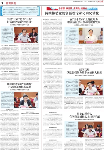 天津传媒学院党委立足于学校实际,把学习贯彻习近平新时代中国特色社会主义思想作为首要政治任务,紧扣以学铸魂、以学增智、以学正风、以学促干的目标要求,带着问题学、带着思考学、带着责任学,切实将党的创新理论转化为武装头脑、指导实践、推动工作的强大力量。
