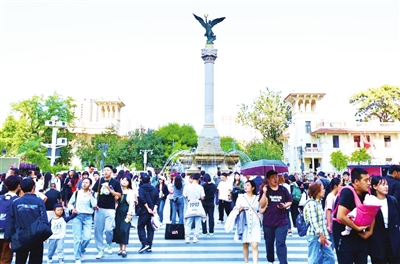 假期,众多游客来到我市意风区品美食、赏美景,旅游休闲,欢度假期。 本报记者 孙立伟 摄
