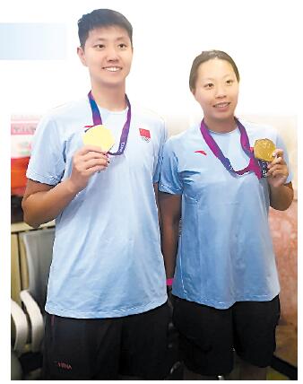 本报讯(记者 李蓓)昨晚,刚刚随中国女子水球队在亚运会夺冠的天津选手阎菁和张佳琪回到天津,天津游泳中心在驻地为她们举行了迎接仪式。