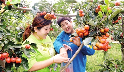 游客在蓟州区出头岭镇果园采摘。