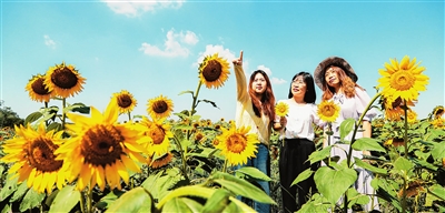 连日来,位于西青区大寺镇海葵花家庭农场内的200余亩向日葵盛开,吸引众多市民前来“打卡”。