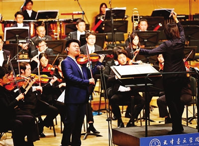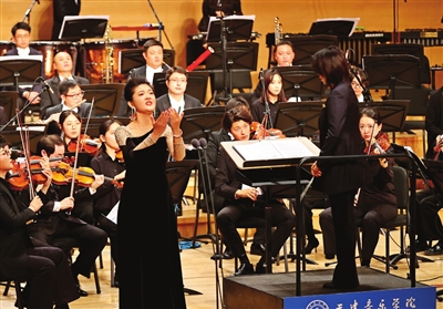 本报讯(记者 张帆 摄影 姚文生)昨晚,“六五弦歌 星火相传”──天津音乐学院建校65周年专场音乐会在天津大剧院音乐厅上演。天津音乐学院10位优秀歌唱家、演奏家轮番登场,携手青年指挥家高嵩和该院青年交响乐团联袂演出。