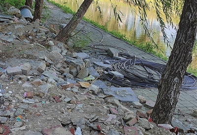 张先生介绍,小区与北水柜渠之间有一条小路,平时业主们会把车停在这里。从几年前开始,渠边有人偷偷倾倒建筑垃圾,而且越倒越多,后来砖石瓦块中又夹杂了线缆、生活垃圾,这里俨然成了一个垃圾场。垃圾有些外溢到道路上,污染了水渠环境,也影响了业主们停车。
