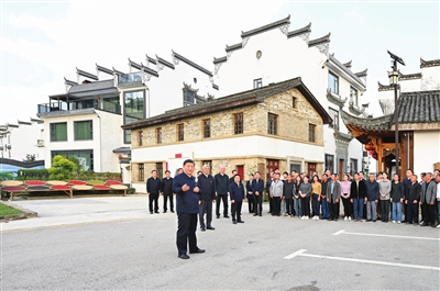 11日下午,习近平来到上饶市婺源县秋口镇王村石门自然村。这里是饶河源国家湿地公园的中心区,也是极度濒危鸟类蓝冠噪鹛自然保护小区,植被多样、生态良好。习近平详细了解湿地公园和蓝冠噪鹛保护等情况。村广场上正在“晒秋”,一排排晒盘盛满红豆、玉米、辣椒等,格外喜人。美术学院师生正在采风写生,习近平驻足观看,同他们亲切交流,鼓励他们打好扎实基本功。得知当地发展特色旅游、茶产业,推进乡村振兴成效显著,习近平十分高兴。他指出,优美的自然环境本身就是乡村振兴的优质资源,要找到实现生态价值转换的有效途径,让群众得到实实在在的好处。乡村要振兴,关键是把基层党组织建好、建强。基层党组织要成为群众致富的领路人,确保党的惠民政策落地见效,真正成为战斗堡垒。