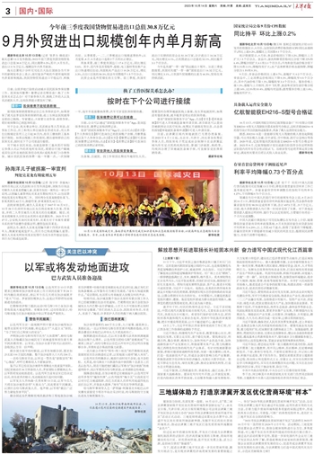 据新华社北京10月13日电(记者 邹多为 韩佳诺)海关总署13日发布数据:2023年前三季度我国货物贸易进出口总值30.8万亿元,同比微降0.2%;其中,9月当月,进出口3.74万亿元,规模创年内单月新高。