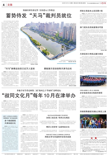 据本届“天马”赛事总管、国际级裁判、天津美术学院教授王锋介绍,天津田协选派的300人中,国际级裁判2名,国家级裁判58名,国家一级裁判210名,国家二级裁判30名。王锋和赛事总管助理、国际级裁判刘赞荣,曾经执裁过2008年北京奥运会、2010年广州亚运会、2011年世界大学生运动会、2012年全国大学生运动会、2013年东亚运动会、2014年青奥会、2015年北京田径世锦赛、2017年天津全运会、2021年陕西全运会以及田径亚锦赛等各类大赛,有着丰富的执裁经验。“我们已经组织了多次培训,主裁判以上级的已经看了线路,并进行了3次汇报。通过9月下旬在宁河区举行的半程马拉松,裁判阵容进行了实战演练。”据王锋介绍,还专门邀请了中国田径界的专家来津进行培训。“昨天上午,我们邀请了世界田联技术委员会委员、世界大学生体育协会技术主任、中国田径协会原副主席沈纯德为全体裁判员进行培训。昨天下午,中国田径协会副秘书长、中国马拉松办公室主任、本届赛事监督水涛,就马拉松赛事进行了培训。两位专家讲了最新的世界田联规则以及大赛案例和最先进的裁判方法等。”